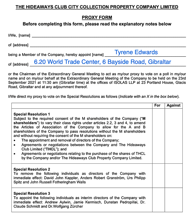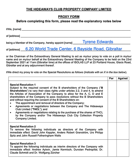Please see our detailed instructions below on how to complete your forms if you are voting in support of our resolutions. Your Proxy Form (s) must be emailed back by 5pm CET on Tuesday, 21st September latest.
